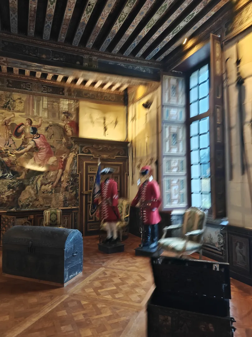 À l’intérieur de cette bâtisse, on peut découvrir des intérieurs richement meublés et décorés, reflétant six siècles de vie aristocratique. Les appartements du château, toujours habité, abritent une vaste collection de meubles, tentures, peintures et objets d’art d’époque, dont le célèbre lit à baldaquin dans lequel Henri IV aurait dormi. La visite inclut également la salle d’armes présentant les uniformes et récompenses du bataillon des Dragons de Cheverny, liée à l’histoire militaire de la famille. Enfin, il y a une petite chapelle tout en haut des escaliers à découvrir (derrière une vitre malheureusement). Durant ma visite, j’ai pu voir plusieurs sculptures en Lego, parfait pour divertir les enfants.